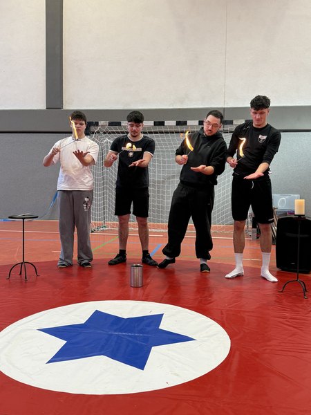 Ob Gruppenspiele wie „Omas Apfelbaum“, akrobatische Figuren in der Waage, oder das spektakuläre Stehen auf Glasscherben sowie das Liegen auf einem Nagelbrett – die Jugendlichen erlebten, wie sich Mut, Vertrauen und Selbstwirksamkeit anfühlen.