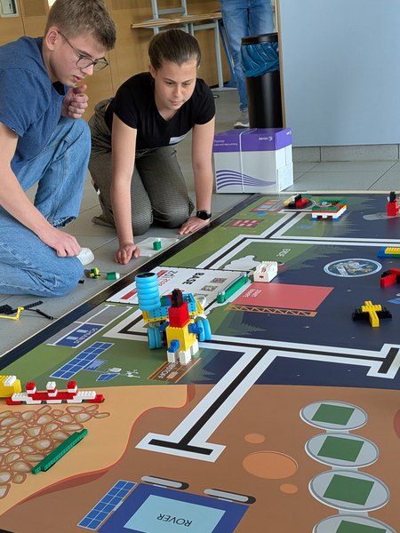 Insgesamt sieben Schüler*innenteams aus Leverkusen trafen sich am 15. April 2026 am Berufskolleg Opladen zu einem der 25 Lokalwettbewerbe, die in diesem Jahr unter dem Motto „zdi-Space Adventures“ stehen. Die Teams treten mit ihren selbstprogrammierten Robotern symbolisch auf einer Spielmatte gegeneinander an. Dabei müssen sie in einem Aufgabenparcours beispielsweise fremde Planeten mit einem Rover erkunden oder Mini-Satelliten in die richtige Position bringen.